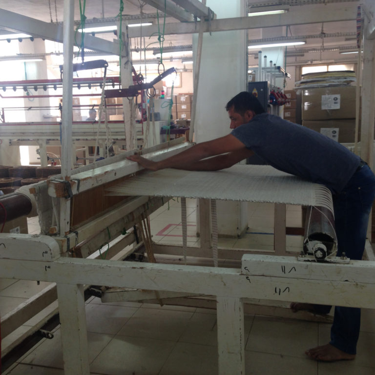 First, we got to see a production facility at NatureTex, SEKEM’s company for organic cotton textiles and garments. Here, a team member is seen weaving carpets from leftover material used in the all-organic clothing production.