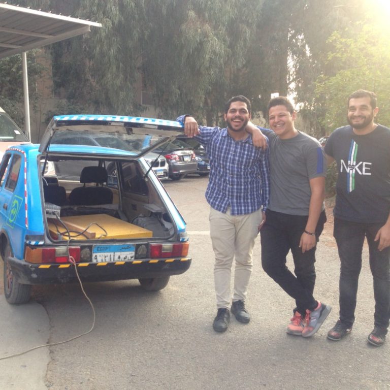 Ms Regina Hanel accompanied us in a tour around campus and to the different faculties. We met students from the Engineering faculty who up-cycled this car and made it electric. It can now drive 80 kilometres after five hours of charging.