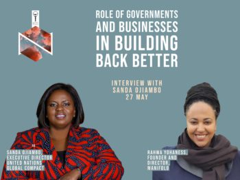 Join us for this one-on-one interview with Sanda Ojiambo, Executive Director of the United Nations Global Compact as we discuss how governments and businesses can work together to design recovery policies anchored in the Sustainable Development Goals.